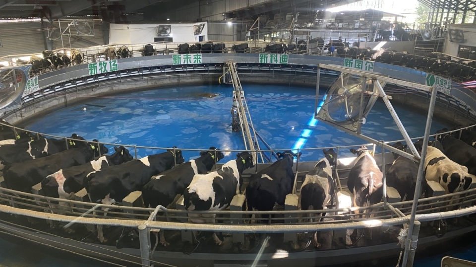“这个转盘有80个挤奶位,每个位置正好站下一头牛,牛走上挤奶位后,挤奶设备会自动与奶牛对接,自动挤奶就正式开始了!”8月29日,在商丘市虞城县乐玩(中国)智慧牧场,工作人员介绍着挤奶流程。